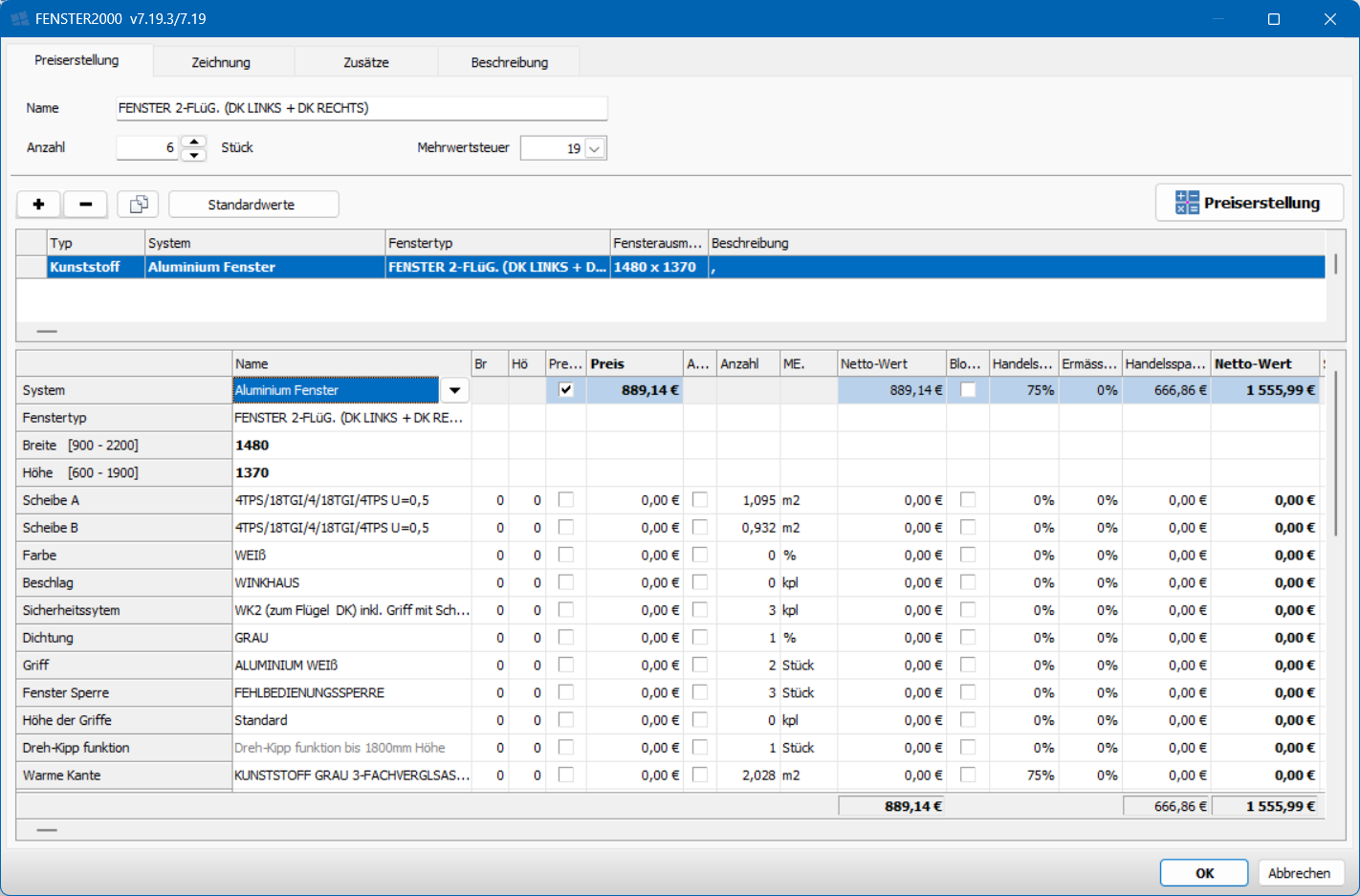 Wycena odbywa się na podstawie cenników rastrowych (tabel cenowych). Każdemu typowi można przypisać odpowiedni dla niego zestaw cech, takich jak szyba, kolor, okucie itp. Podczas wyceny użytkownik wybiera system, typ oraz podaje wymiary. Następnie wybierane są wartości poszczególnych cech przypisanych dla danego typu.